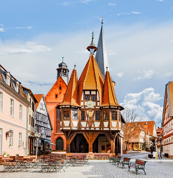 Na het ontbijt bezoeken we Michelstadt en verkennen het charmante middeleeuwse centrum met hoogtepunten zoals de kerk, de Marktplatz met het iconische stadhuis uit 1484, en de dieventoren. Na een vrije lunch ontdekken we in Erbach het Residenzschloss, met zijn indrukwekkende antiekcollectie en prachtige tuin met orangerie. We sluiten de dag af in het Elfenbeinmuseum, waar we schitterende ivoren kunstwerken bewonderen.