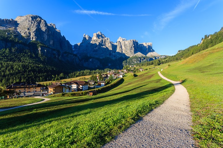 *De kortere tour voert van de Grödner Joch over de Kolfuschger Höhenweg en via het Edelweisstal naar Kolfuschg (wandeltijd ca. 3 uur).