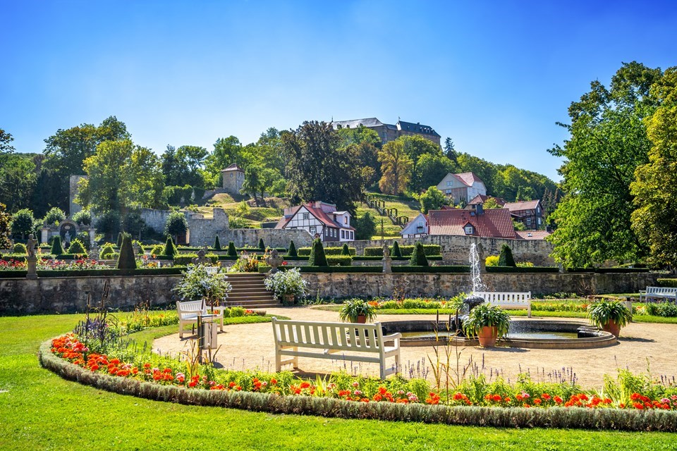 Vandaag beginnen we onze reis met een begeleide rondwandeling door de prachtige Oberhof Ballenstedt, een landgoed dat in de 16e eeuw werd omgebouwd tot een verstrekt stadskasteel. Hier leren we meer over de familiegeschiedenis van de beroemde familie von Alvensleben. Het was deze familie die het landgoed liet omringen door een hoge muur en het prachtige landschapspark liet aanleggen. Een unieke plek vol geschiedenis die we samen ontdekken. Vervolgens verkennen we Quedlinburg, een stad die op de UNESCO Werelderfgoedlijst staat. We wandelen door het middeleeuwse stadscentrum, bewonderen de prachtige vakwerkhuizen, de charmante Jugendstil-villa’s en de historische Schlossberg, die ons een panoramisch uitzicht biedt over de stad. Na de verkenning van de stad maken we een rit met de Quedlinburger Bimmelbahn door de meer dan 1000 jaar oude binnenstad, richting het Schloss Quedlinburg, waar we meer leren over de geschiedenis van dit imposante kasteel. We sluiten de dag af met een bezoek aan het indrukwekkende cisterciënzersklooster Michaelstein en verkennen de prachtige kloostertuinen die het klooster omringen.