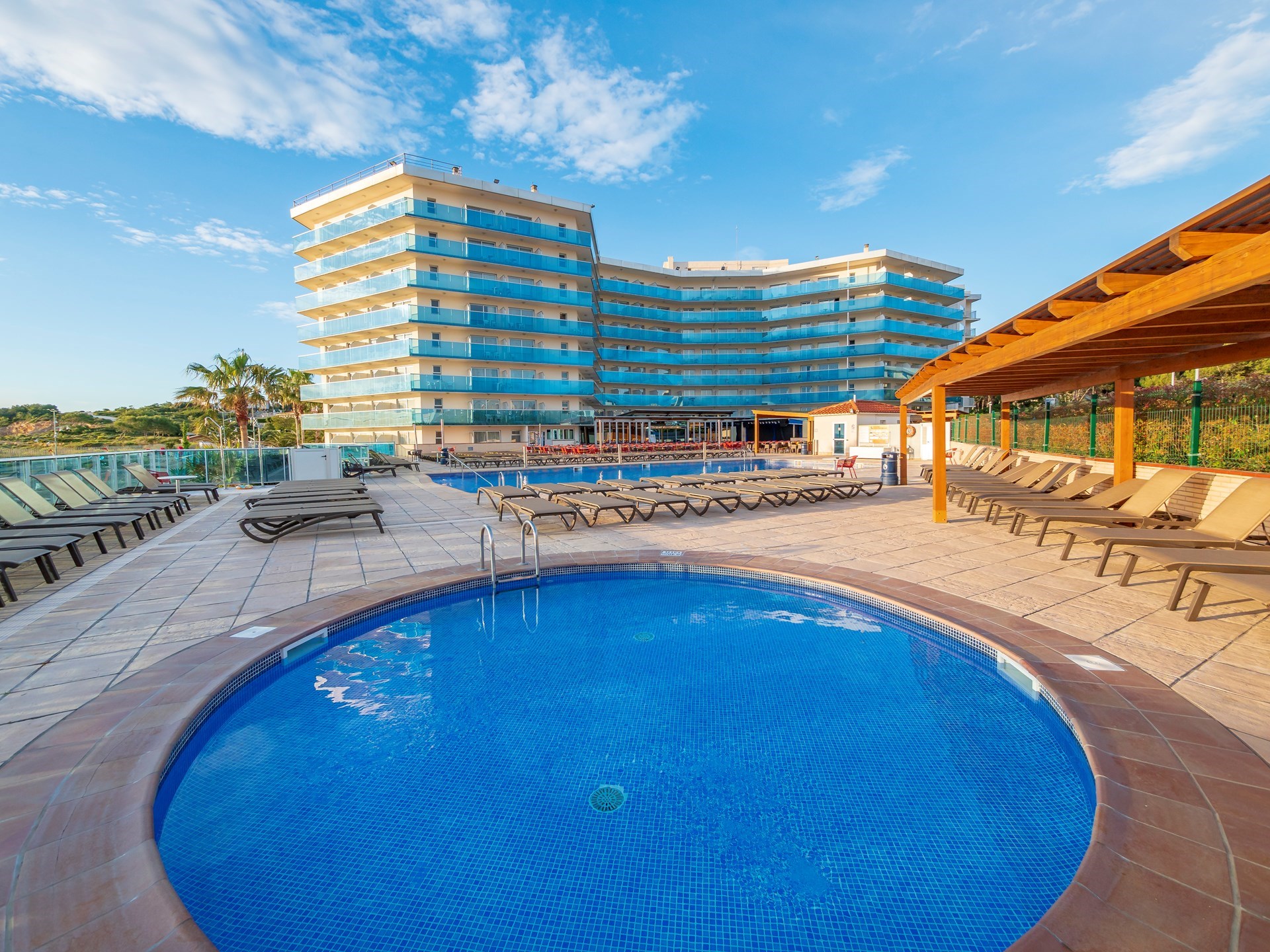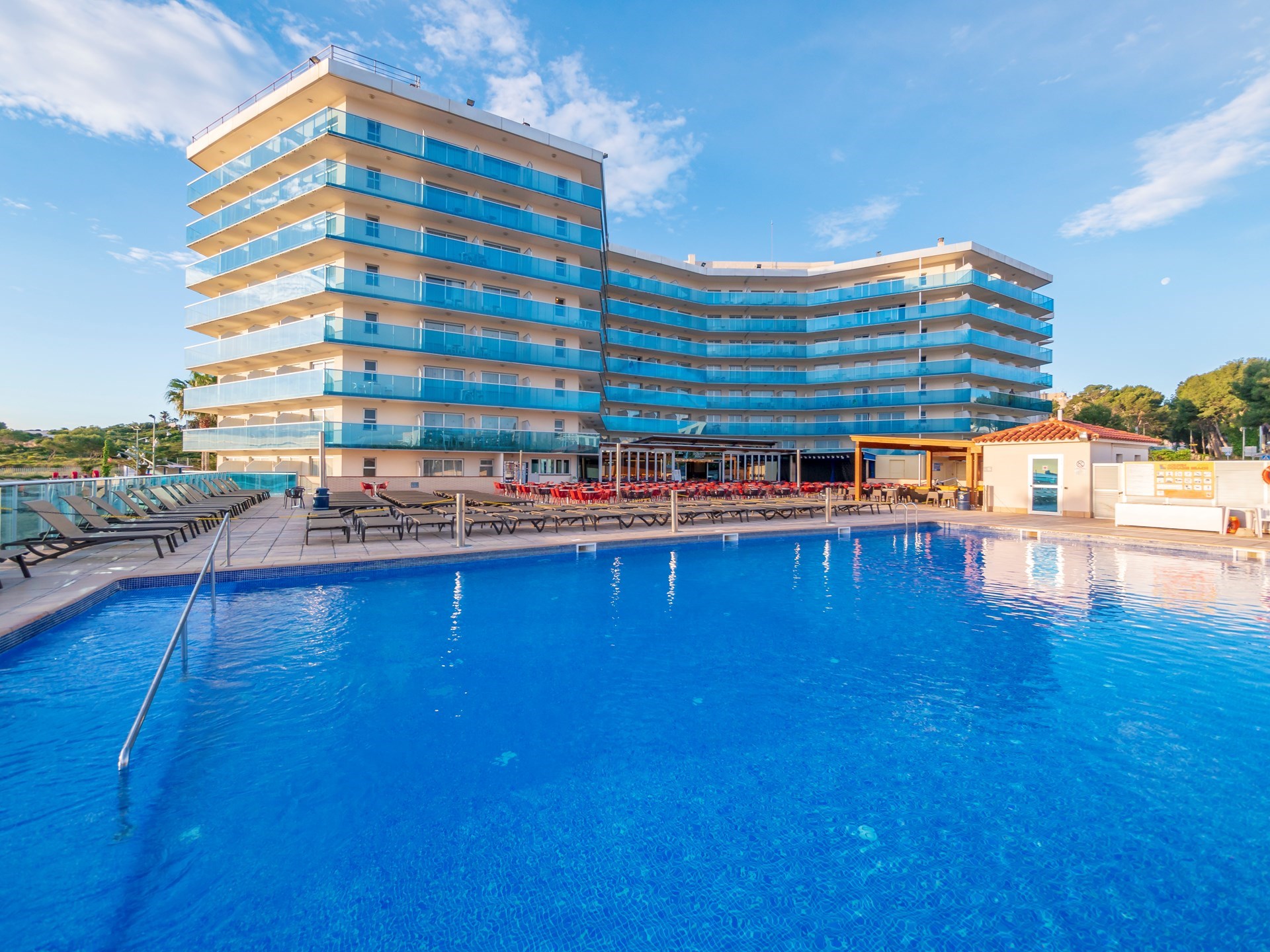 Gelegen in La Pineda, aan een langzaam aflopend zandstrand op 200 m van het centrum van La Pineda en op ca. 4 km van het centrum van Salou. Bushalte op 200 m.