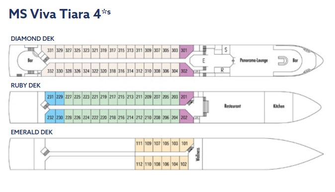 hebben Franse balkons. De kajuiten op het Emerald dek (= onderste dek) hebben kleinere ramen, welke om veiligheidsredenen niet te