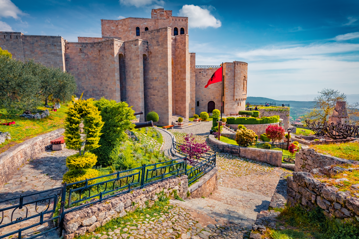Een bijzondere plek voor de Albanezen is Kruja. Het is vooral bekend vanwege zijn historische betekenis en cultureel erfgoed, met name in verband met de nationale held van Albanië, Gjergj Kastrioti, ook bekend als Skanderbeg. Het Skanderbeg Museum binnen de kasteelmuren vertelt het verhaal van deze nationale held en zijn strijd voor onafhankelijkheid. Daarnaast biedt het etnografisch museum, gevestigd in een oud huis, inzicht in de levensstijl in het noorden van Albanië. Een bezoek aan de oude stad Kruja is zoals een boeiende reis door de geschiedenis en cultuur van Albanië. De geplaveide paden leiden ons naar de Ottomaanse bazaar met houten winkels en de imposante kasteelmuren. Een onvergetelijke ervaring om de rijke erfenis van de stad te verkennen. In de namiddag maken we vanuit het hotel een interessante stadswandeling langs de voornaamste bezienswaardigheden in Tirana. We brengen een bezoek aan het Nationaal Historisch Museum waar de belangrijkste fasen uit de Albanese geschiedenis vertegenwoordigd zijn.