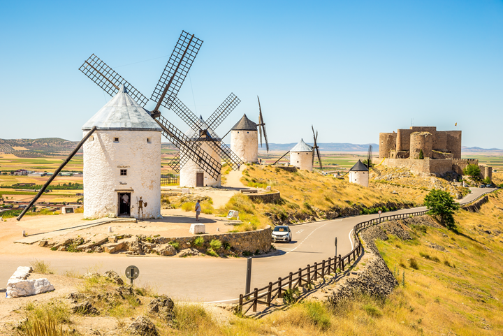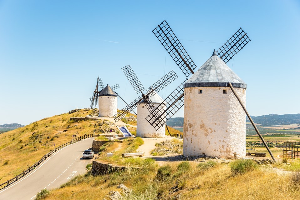 Vandaag maken we een rit door de vlaktes van La Mancha met enorme velden, wijngaarden, burchten en windmolens van waarachter elk moment Don Quichot en Sancho Panza tevoorschijn kunnen komen. De roman ‘Don Quichot de la Mancha’, geschreven door Miguel de Cervantes, wordt ons thema onderweg naar Consuegra. Dit dorp met de fotogenieke windmolens is aan de saffraanoogst gewijd. Het boek bevat een iconische scène waarin de hoofdpersoon, Don Quichot, windmolens voor reuzen aanziet en ertegen strijdt. Deze scène symboliseert vaak de botsing tussen idealisme en realiteit. Cervantes, geboren in 1547, wordt beschouwd als de grootste Spaanse schrijver. Zijn werk is een literair meesterwerk dat de moderne roman heeft beïnvloed. We vervolgen onze reis naar Madrid. In het hart van Madrid, naast de Gran Vía ligt hotel Emperador 4* waar we de volgende 2 nachten verblijven. Dit elegant hotel heeft een prachtig zwembad en een terras op het dak met fantastisch uitzicht op de stad.