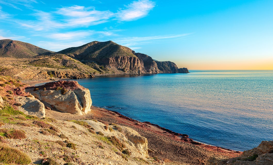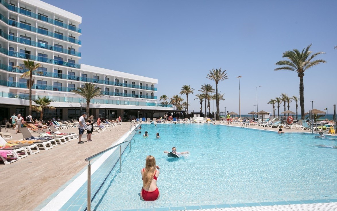 direct aan het fijne kiezelstrand, in het centrum van de urbanisatie Roquetas de Mar, ± 40 km van de luchthaven.
