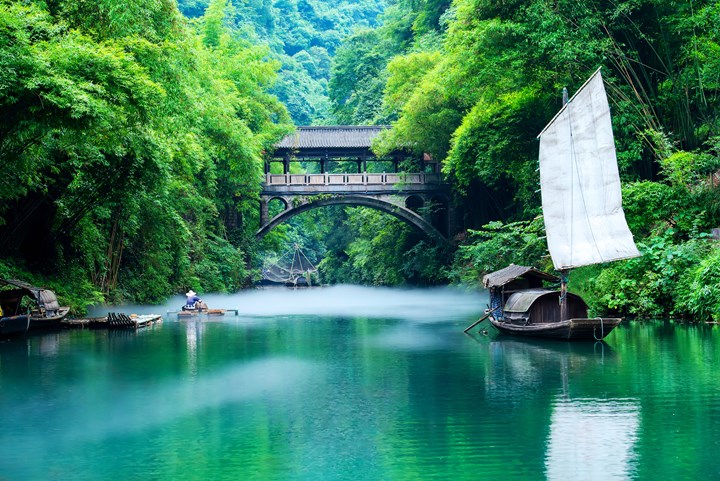 Vroeg in de ochtend passeren we de Wukloof, beroemd om zijn steile hellingen en zijn pieken met inspirerende namen: Piek van de Godin, Piek van de Vliegende Feniks en Piek van de Klimmende Draak, waarna we aanmeren in Wushan. Aan boord van ‘sampans’, een typisch bootje uit Oost- en Zuidoost-Azië, ontdekken we de Drie Kleine Kloven van de Daning, een zijrivier van de Yangtze. Terwijl we verder varen, genieten we van een buitengewoon landschap van bergtoppen, groene heuvels waar gouden stompneusapen spelen en watervallen. De kliffen lijken binnen handbereik en op de flanken getuigen de hangende doodskisten van het Chinese volk Bo, dat bijna uitgestorven is, van 1.000 jaar menselijke aanwezigheid. In de vooravond komen we aan bij de Qutangkloof, de kortste en smalste van de Drie Kloven. Avondmaal en overnachting aan boord.
