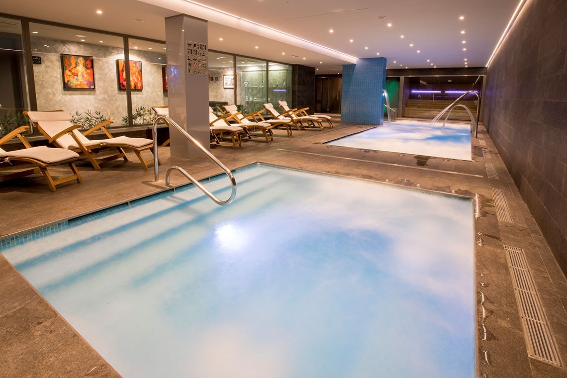 wellness-ruimte met zwembad (badmuts verplicht), hot tub, sauna en stoombad (€ 9 volw./sessie 45 min. en € 6 kind 3-11 jaar/sessie 45 min.) - fitnessruimte