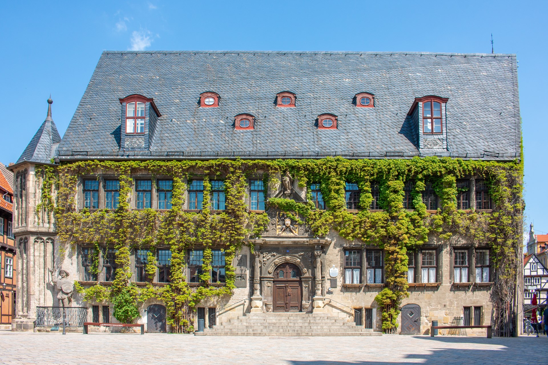 Vandaag beginnen we onze reis met een begeleide rondwandeling door de prachtige Oberhof Ballenstedt, een landgoed dat in de 16e eeuw werd omgebouwd tot een verstrekt stadskasteel. Hier leren we meer over de familiegeschiedenis van de beroemde familie von Alvensleben. Het was deze familie die het landgoed liet omringen door een hoge muur en het prachtige landschapspark liet aanleggen. Een unieke plek vol geschiedenis die we samen ontdekken. Vervolgens verkennen we Quedlinburg, een stad die op de UNESCO Werelderfgoedlijst staat. We wandelen door het middeleeuwse stadscentrum, bewonderen de prachtige vakwerkhuizen, de charmante Jugendstil-villa’s en de historische Schlossberg, die ons een panoramisch uitzicht biedt over de stad. Na de verkenning van de stad maken we een rit met de Quedlinburger Bimmelbahn door de meer dan 1000 jaar oude binnenstad, richting het Schloss Quedlinburg, waar we meer leren over de geschiedenis van dit imposante kasteel. We sluiten de dag af met een bezoek aan het indrukwekkende cisterciënzersklooster Michaelstein en verkennen de prachtige kloostertuinen die het klooster omringen.