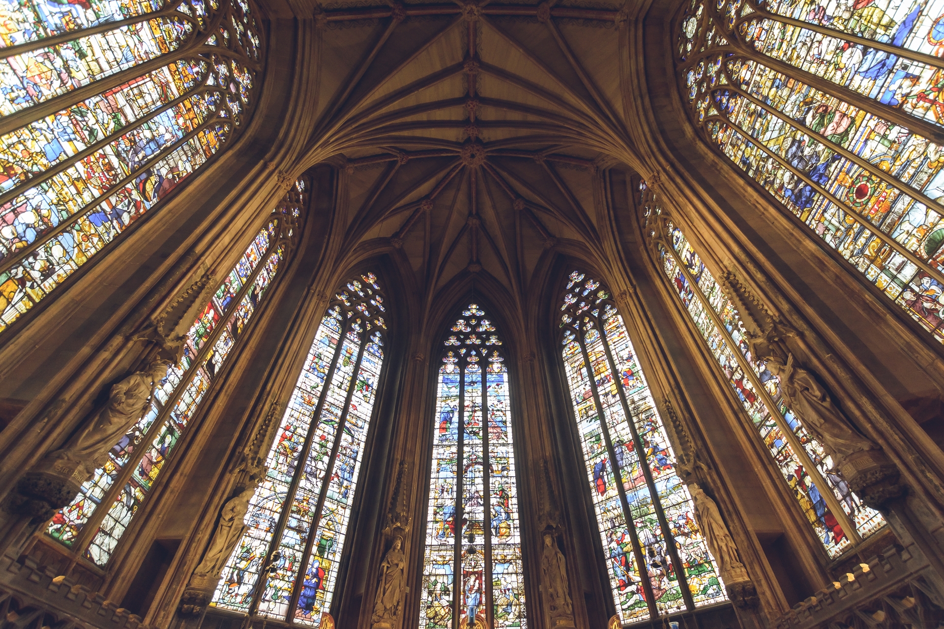 Door Rutland en Leicestershire rijden we naar Lichfield dat hét voorbeeld van de Engelse hooggotiek herbergt. Ook hier is Vlaanderen weer schitterend aanwezig: de unieke verzameling glasramen van de voormalige abdij van Herkenrode zijn hier terug te vinden in de Lady’s Chapel. In Coventry staan oud en nieuw broederlijk naast elkaar als een levende getuigenis van de herrijzing uit de as van de Tweede Wereldoorlog. In Warwick hebben de Earls een aanzienlijke kunstcollectie verzameld in hun middeleeuwse burcht. Het Stratford-upon-Avon van Shakespeare mag dan al wat toeristischer zijn, het straalt nog steeds de sfeer uit die ook de grootste Engelse schrijver er heeft ervaren, of toch niet…?