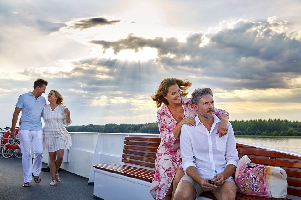 De kajuiten bieden alles wat u maar kunt wensen in een drijvend 5*-hotel: flatscreen tv, radio, minibar, kluis, föhn, airconditioning, douche/toilet. Op het Emerald dek (onderste dek) vindt u buitenkajuiten. Het Ruby dek (middelste dek) heeft buitenkajuiten (15m2) met 2 aparte bedden die op verzoek kunnen worden gescheiden. Op het Diamond dek (bovenste dek) kunt u heerlijk ontspannen in buitenkajuiten (15m2) en suites (24m2). De kajuiten op het Ruby dek en Diamond dek beschikken over openschuivende ramen welke van de vloer tot het plafond reiken (= Franse balkons). Hierdoor heeft u een onbeperkt zicht op de rivier, de mooie landschappen, en geniet u van 1.000 wisselende uitzichten. De kajuiten op het Emerald dek hebben kleinere ramen die om veiligheidsreden niet te openen zijn.