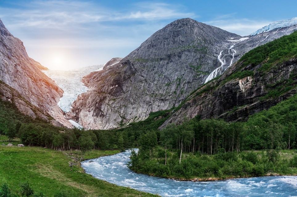 We beginnen de dag met een prachtige 1 uur durende cruise over de Geirangerfjord, een van de smalste fjorden van Noorwegen. Onderweg bewonderen we de indrukwekkende watervallen, waaronder de beroemde 'Zeven Zusters' en de 'Bruidssluier'. Na ontscheping in Hellesylt rijden we via Stryn langs de betoverende Nordfjord naar Olden, waar we de Briksdalgletsjer bezoeken. Deze enorme gletsjer is een van de grootste in Noord-Europa (stevige wandelschoenen aanbevolen). Met de ‘Troll cars’ maken we een rit dichter naar de gletsjer, gevolgd door een korte wandeling. Daarna reizen we verder naar ons hotel, gelegen aan het adembenemende eindpunt van de Nordfjord.