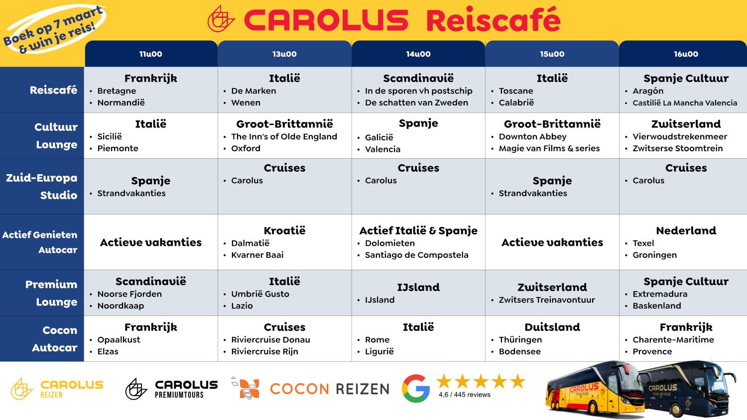 Boek tijdens het reisevent, op 7 maart, je vakantie, en win je reis gratis terug. Hoge winstkansen!