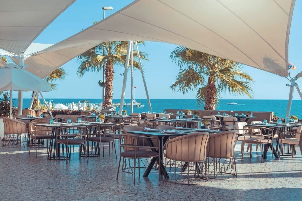 Direct aan het zandstrand aan de wandelpromenade van Side, op 4 km van het centrum en op 6 km van Manavgat. Luchthaven gelegen op ca. 65 km.