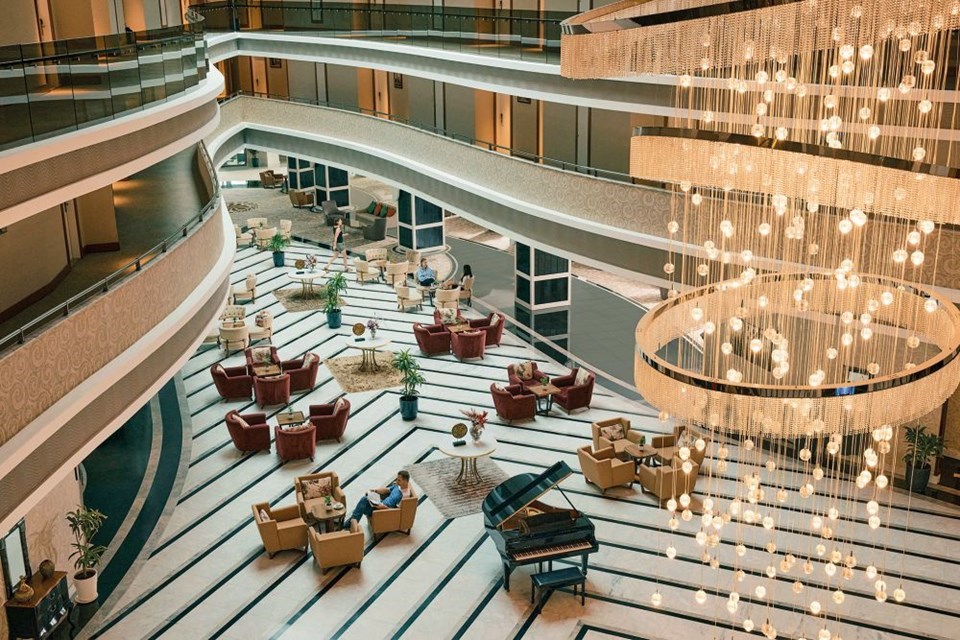 - minibar (bij aankomst gevuld met water en frisdranken, enkel water wordt gratis bijgevuld), de beschikbaarheid van de dranken is afhankelijk van de openingsuren van de bars.