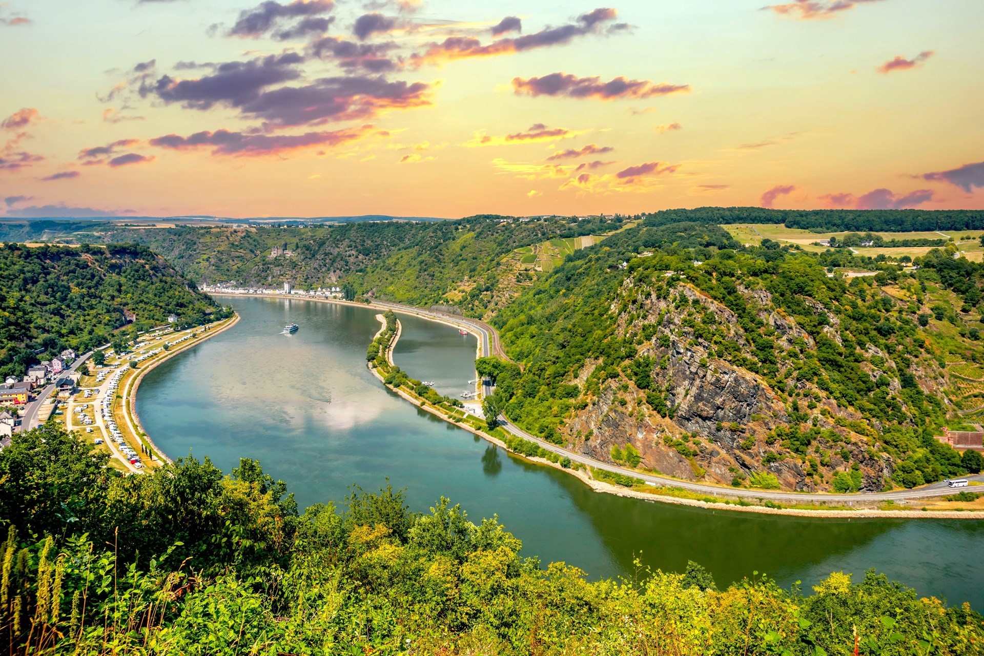We rijden met onze luxe autocar naar Eberbach voor een bezoek aan het prachtige, historische Cisterciënzerklooster, waar we een uitgebreide rondleiding krijgen en de serene sfeer van dit monument kunnen ervaren. Daarna keren we terug naar Rüdesheim en verkennen we de charmante, oude stadskern tijdens een sfeervolle dorpswandeling. Voor de lunch gaan we weer aan boord en varen richting de beroemde Loreley-passage, die met zijn indrukwekkende rotspartijen en verhalen terecht op de Werelderfgoedlijst staat.