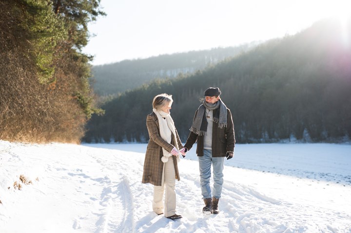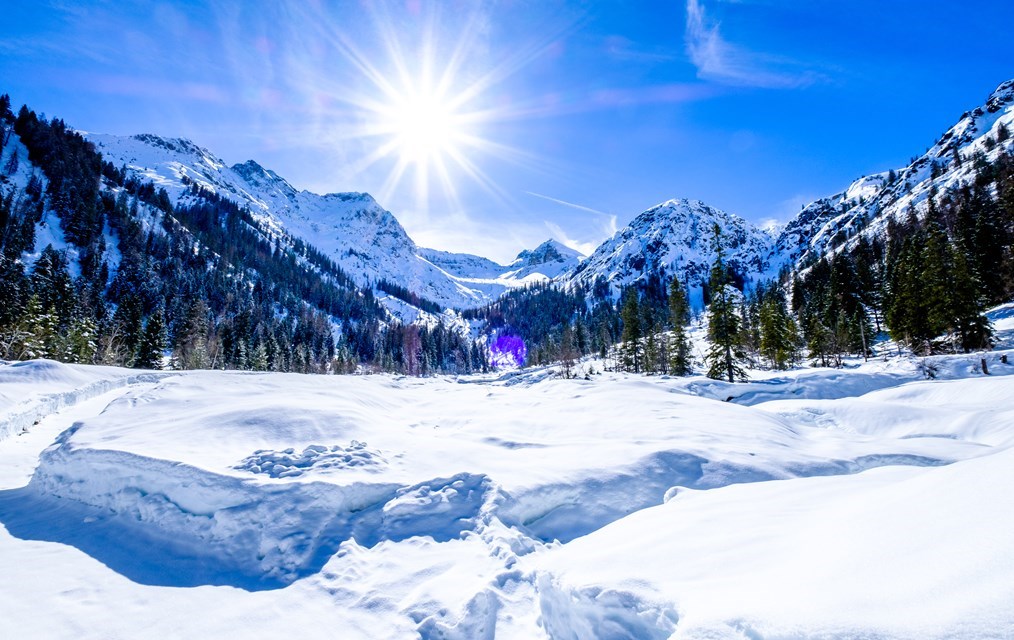 Sneeuwwandeling in Auffach, wandel door het betoverende winterlandschap van het dorp. Winterwandeling naar de Schönangeralm.