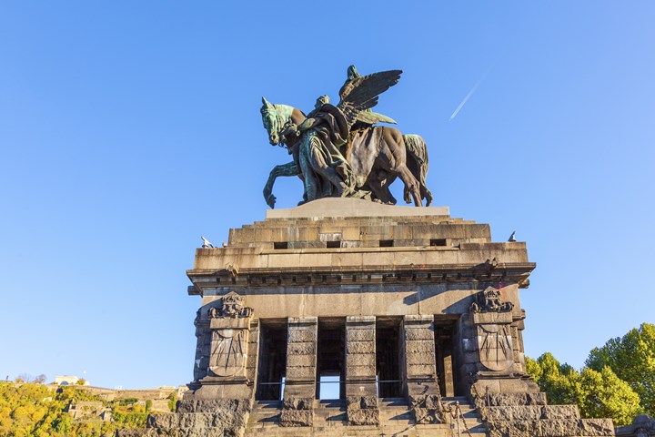 Vandaag meren we aan in Koblenz, de stad waar de Moezel en de Rijn samenvloeien. Op een spitse landtong springt meteen een enorm monument in het oog: het ‘Deutsches Eck’.