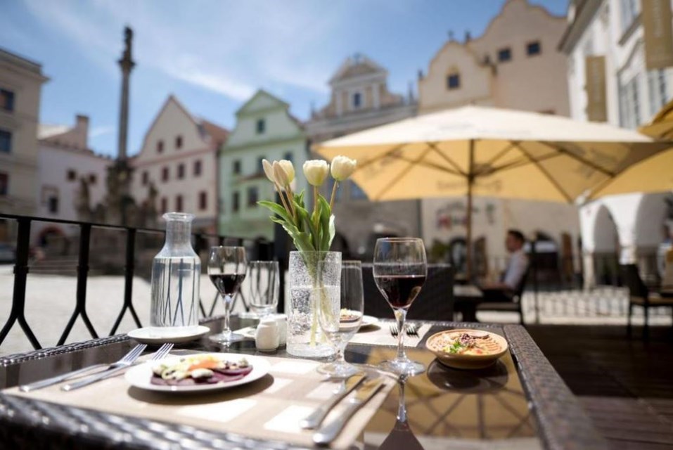 We overnachten in Hotel Oldinn****, een charmant hotel gelegen in het hart van Český Krumlov, vlakbij het beroemde kasteel en andere belangrijke bezienswaardigheden.