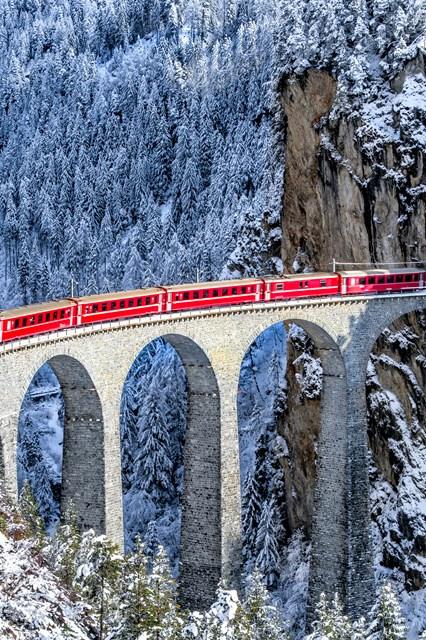 Kelten, Romeinen, Ostrogoten en Franken: al deze volkeren heersten ooit over Chur, de toegangspoort tot belangrijke handelsroutes en Alpenpassen. Tijdens een korte stadswandeling maken we kennis met de sporen van dit verleden. Na een één uur durende treinrit met de Arosa Line komen we in Arosa aan. Deze onvergetelijke rit klimt 1.000 meter op een afstand van 26 kilometer en begint rustig door de historische straten van Chur, maar enkele minuten later baant de trein zich een bochtige weg door de ongerepte natuur en de berglandschappen van Schanfigg. De route brengt ons over het befaamde Langwieser Viaduct dat als een majestueuze triomfboog 62 meter hoog boven de kloof welft. Het getuigt van de pioniersgeest van de ingenieurs die ooit spoorwegtechnische hoogstandjes tot stand brachten. We lunchen in Arosa, gelegen aan het einde van het dal van Schanfigg. Op een hoogte van 1.800 meter genieten we van mooie uitzichten over talrijke bergtoppen. We keren met de trein terug naar Chur.